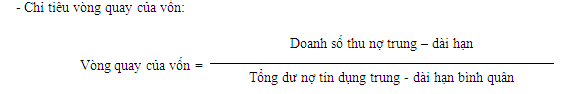 Chỉ tiêu này cho ta biết ngân hàng thu nợ theo kế hoạch trong hợp đồng tín dụng được bao nhiêu để có thể lại cho vay dự án mới. Vòng quay của vốn càng lớn thì càng tốt vì điều đó khẳng định ngân hàng thu được nhiều nợ và chứng tỏ nguồn vốn trung - dài hạn ngân hàng đã đầu tư hoạt động có hiệu quả. Ngược lại, nếu vòng quay của vốn càng nhỏ thì việc thu nợ của ngân hàng là kém và nguồn vốn trung - dài hạn mà ngân hàng đã đầu tư hoạt động kém hiệu quả.