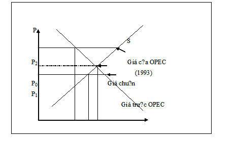 Gọi P là mức giá của mặt hàng dầu thô, Q là sản lượng mặt hàng này. Tại P = P0 thì mức cung bằng mức cầu và P0 gọi là điểm giá chuẩn hay mức giá cân bằng. Nếu mức giá cao hơn mức giá chuẩn thì cung lớn hơn cầu do đó sản lượng thực tế bị quyết định bởi mức cầu. Nếu tại đó mức giá tiếp tục tăng thì sản lượng thực tế sẽ giảm. Đây là trường hợp xảy ra vào năm 1973 khi OPEC nâng giá dầu gây nên cuộc suy thoái kinh tế toàn cầu. Ngược lại, nếu mức giá thấp hơn mức chuẩn thì cung thấp hơn cầu, do đó cung quyết định sản lượng thực tế.