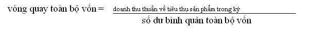 - vòng quay toàn bộ vốn: chỉ tiêu này cho biết vốn của doanh nghiệp trong một kỳ quay được bao nhiêu vòng.