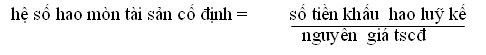 chỉ tiêu hệ số hao mòn tài sản cố định phản ánh: cứ 1 đồng vốn bỏ ra trong gía trị tài sản cố định thì số vốn thu hồi trong việc sử dụng tài sản cố định đó là bao nhiêu