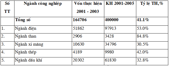 Đánh giá vốn đầu tư ngành công nghiệp giai đoạn 2001-2003