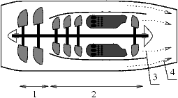 Có tài liệu tiếng Anh gọi loại này là turbofan. Đây là loại động cơ mà các cánh quạt tầng ngoài cùng của máy nén áp thấp có cấu tạo và kích thước đặc biệt lùa không khí làm hai dòng: một dòng đi qua động cơ (dòng số 3 trên hình vẽ) và một dòng đi vòng qua động cơ tạo lực đẩy trực tiếp (dòng số 4) và hai dòng này hòa vào nhau tại phễu phụt vì vậy động cơ được gọi là động cơ hai viền khí (tiếng Anh: two-contour turbojet, tiếng Nga: двухконтурный турбо-двигатель). Đây là phương án trung gian giữa động cơ tuốc bin cánh quạt và động cơ tuốc bin phản lực. Đối với loại động cơ này có một chỉ số rất quan trọng đó là hệ số hai viền khí (tiếng Anh: Bypass ratio) m là tỷ lệ thể tích của khối khí chạy bên ngoài so với khối khí chạy bên trong động cơ, (đối với động tuốc bin phản lực thuần túy m = 0) chỉ số càng lớn thì động cơ có hiệu suất càng tốt và càng giống động cơ tuốc bin cánh quạt và vận tốc càng thấp, hệ số này lớn hơn 2 thì không thể phát triển được vận tốc siêu âm. Còn các động cơ siêu âm có hệ số m thấp hơn hoặc bằng 2.