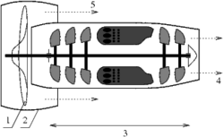 Cánh quạt được nối vào trục máy nén khí áp thấp qua hộp số giảm tốc. Đặc điểm của loại động cơ này là tuốc bin của động cơ vừa lai máy nén vừa lai tải chính là cánh quạt nên phải thiết kế tuốc bin sao cho sử dụng được hết năng lượng của dòng khí nóng sau buồng đốt. Với loại động cơ này, dòng khí sau khi ra khỏi tuốc bin có vận tốc còn rất thấp, nhiệt độ, áp suất gần cân bằng với môi trường.