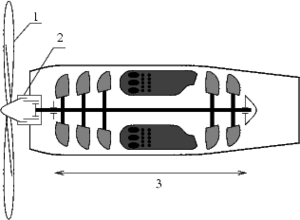 Loại này cũng để trang bị cho trực thăng mô men quay được truyền qua hộp số và chuyển hướng để quay cánh quạt nâng nằm ngang (tiếng Anh: Turbo Shaft).