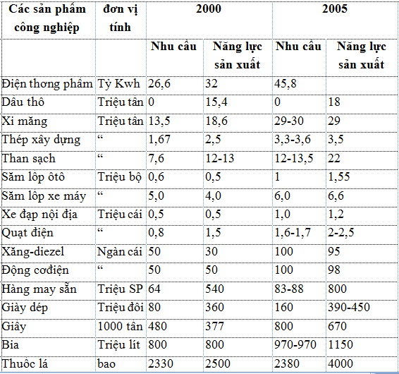 Dự báo nhu cầu trong nước một số sản phẩm công nghiệp chủ yếu năm 2005