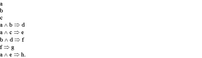 Trong ví dụ trên, chiến lược tìm kiếm hướng mục tiêu để xác định h là đúng trước hết phải chứng minh cả a lẫn e đúng. Nút a đúng là tất nhiên, nhưng muốn e đúng thì cả c lẫn a đều phải đúng, hai nút này đã được cho trước là đúng. Khi chương trình giải bài toán đã xác định tất cả các cung này là các mệnh đề đúng, thì các giá trị đúng sẽ được tổng hợp lại ở các nút Và để kiểm chứng giá trị đúng của h.