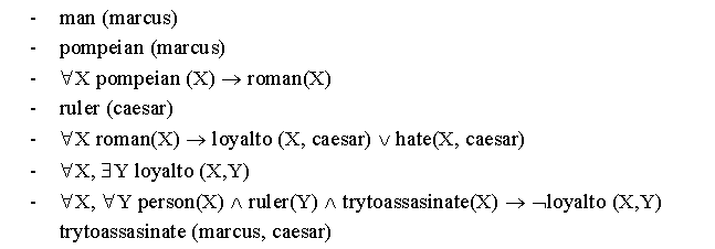 Các câu trên có thể được biểu diễn dưới dạng các câu hay công thức dạng chuẩn (wff) trong ngôn ngữ Phép tính vị từ như sau: