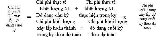 Giá trị sản phẩm dở dang được đánh giá theo chi phí thực tế trên cơ sở phân bổ chi phí thực tế của hạng mục công trình đó cho các giai đoạn, tổ hợp công việc đã hoàn thành và giai đoạn còn dở dang theo giá trị dự toán của chúng.