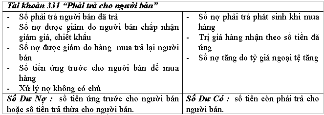 Căn cứ vào các chứng từ gốc về thanh toán với người bán, kế toán chi tiết ghi vào sổ chi tiết TK 331 được mở riêng cho từng nhà cung cấp. Mẫu sổ chi tiết TK 331 đã được bộ tài chính ban hành và hướng dẫn cách ghi chép. Theo quy định chung, đối với tất cả các khoản phải thu, phải trả có gốc ngoại tệ phải có sổ chi tiết riêng theo từng đối tượng thanh toán và theo từng loại ngoại tệ.