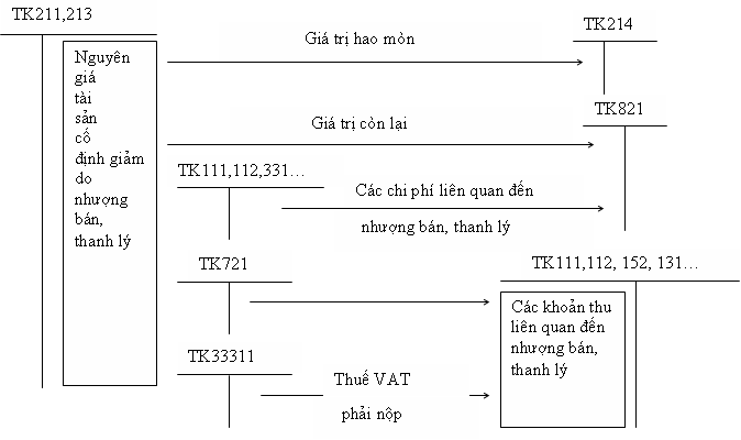 Sơ đồ hạch toán giảm TSCĐ hữu hình, TSCĐ vô hình do nhượng bán thanh lý