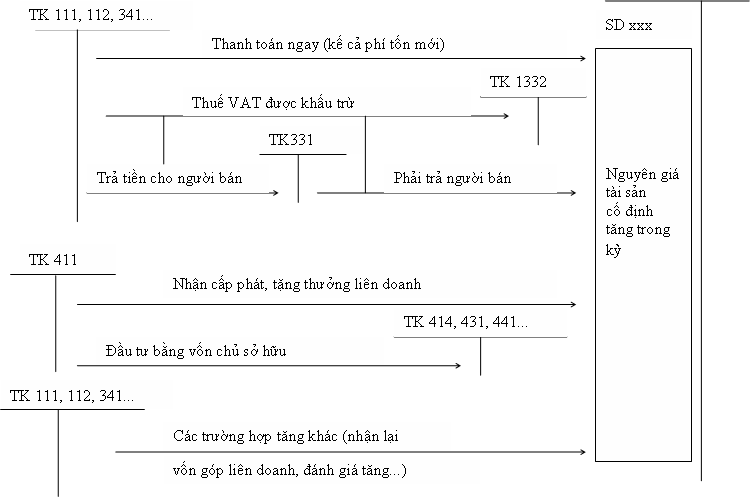 Sơ đồ hạch toán tổng quát tăng TSCĐ hữu hình, TSCĐ vô hình do mua sắm, do XDCB bàn giao...