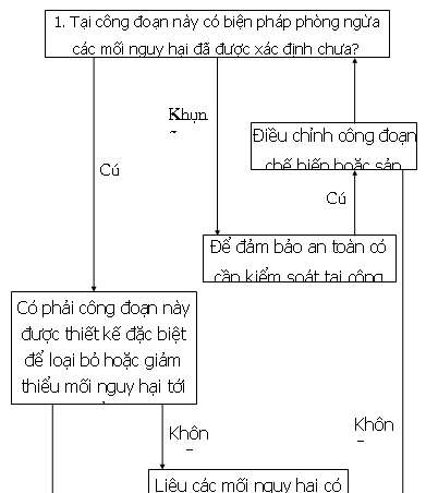 Sử dụng sơ đồ quyết định để xác định các điểm kiểm soát trọng yếu trong suốt quá trình chế biến thực phẩm của nhà máy. Sơ đồ quyết định là sơ đồ lôgic nhằm thiết lập một cách khoa học và hợp lý các điểm kiểm soát trọng yếu của một quá trình sản xuất thực phẩm (sơ đồ 4).
