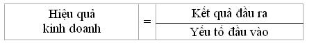 Hiệu quả kinh doanh là một phạm trù kinh tế phản ánh trình độ sử dụng các nguồn nhân tài, vật lực của doanh nghiệp để đạt được kết quả cao nhất trong quá trình kinh doanh với chi phí thấp nhất. Để hiệu quả hoạt động kinh doanh cao thì khi sử dụng các yếu tố cơ bản lao động, tư liệu lao động, đối tượng lao động của quá trình kinh doanh phải có hiệu quả.