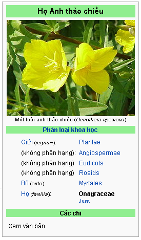 - Phân họ Anh thảo chiều (Onagroideae): Khoảng 17 chi với 565 loài