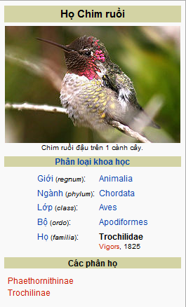 Họ Chim ruồi, còn được gọi là họ Chim ong (danh pháp khoa học: Trochilidae) là một họ chim nhỏ, khi bay chúng đứng nguyên ở một chỗ, đôi cánh của chúng đập trên 70 lần/giây, vì vậy chúng được đặt tên là chim ruồi.