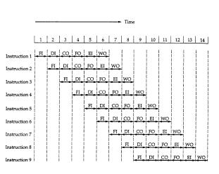 Using the assumption of the equal duration for various stages, the figure 8.2 shown that a six stage pipeline can reduce the execution time for 9 instructions from 54 time units to 14 time units.