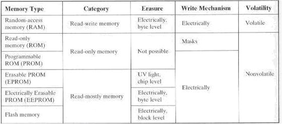 The basic element of a semiconductor memory is the memory cell. There are a lot of semiconductor memory types shown in table 11.1