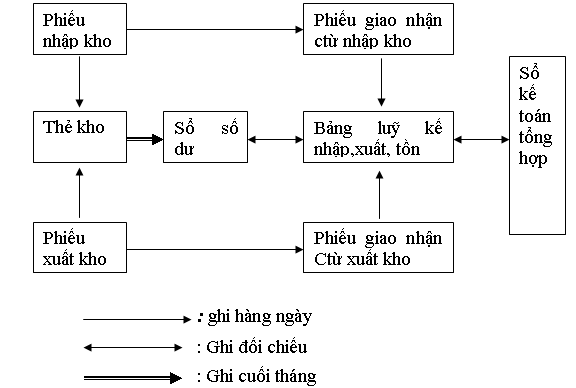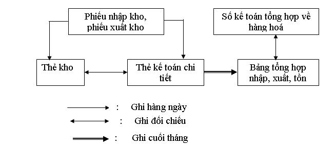 Hàng ngày hoặc định kỳ thủ kho phải chuyển chứng từ cho kế toán hàng hoá để ghi vào các thẻ hoặc sổ chi tiết ở phòng kế toán cả về số lượng và giá trị.