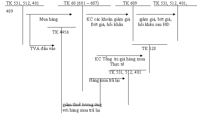 60 – mua (trừ TK 603) – theo dõi trị giá hàng mua thực tế.