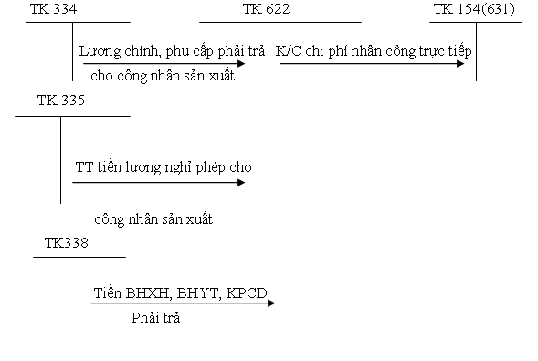 Trình tự kế toán nhân công trực tiếp được khái quát theo sơ đồ sau: