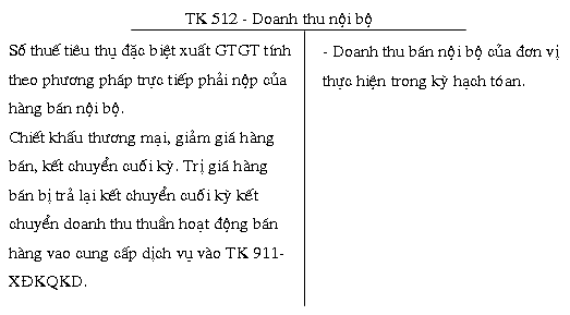 Kết cấu và nội dung phản ánh TK 512- Doanh thu nội bộ.