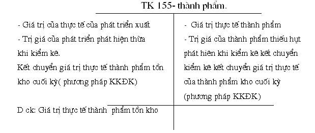 Tài khỏan kế toán sử dụng: ''TK 155 thành phẩm''