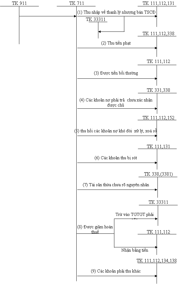 - Cuối kỳ kết chuyển các khoản thu khác trong kỳ sang TK911 xác định KQKD .