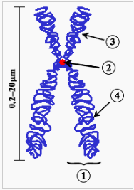(1) Chromatid . (2) Tâm động - nơi 2 chromatid đính vào nhau, là nơi để NST trượt trên thoi vô sắc trong quá trình nguyên phân và giảm phân. (3) Cánh ngắn. (4) Cánh dài.