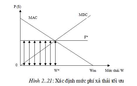 Như vậy, theo cách tiếp cận ô nhiễm tối ưu thứ hai nói ở trên, mức phí tối ưu (hay mức phí có hiệu quả) sẽ được xác định tại mức thải W*, tại đó F = MAC = MDC.