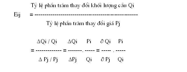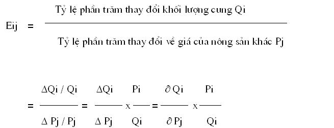 Để đánh giá mức độ biến động cung sản phẩm i do thay đổi giá sản phẩm j, ta dùng hệ số co dãn theo giá chéo của cung, ký hiệu Eij được tính như sau: