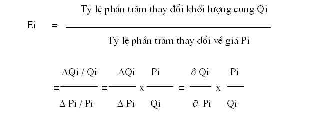 Hệ số có dãn cung theo giá là tỷ lệ phần trăm thay đổi trong tổng cung do giá bán thay đổi chia cho phần trăm thay đổi về giá bán của chính nông sản đó (ký hiệu là Ei)