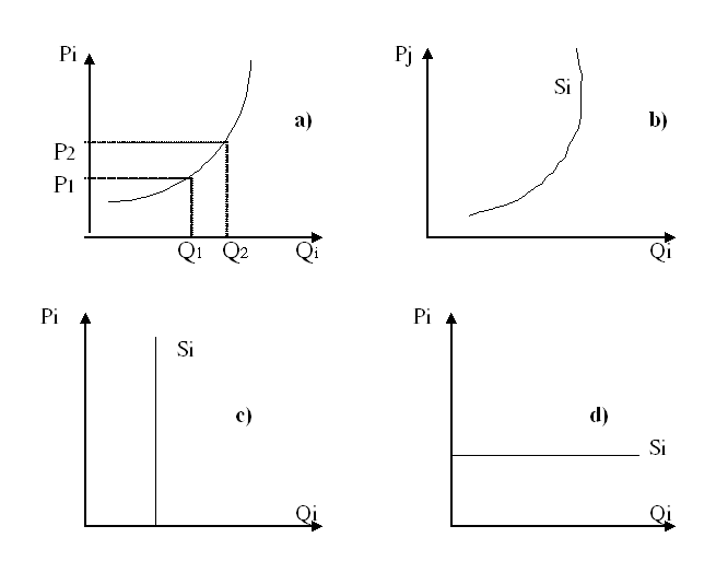 Đường cung biểu diễn ở hình 8.1.a là đường cung tổng quát. Trên thực tế có những dạng đường cung đặc biệt như ở hình 8.1.b; 8.1.c và 8.1.d.