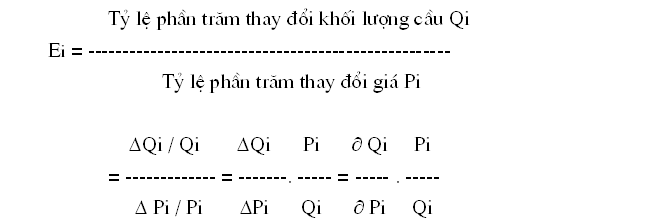 Hệ số co dãn của cầu theo giá, ký hiệu Qi, là tỷ lệ phần trăm thay đổi trong tổng cầu chia cho phần trăn thay đổi về giá của một loại nông sản hàng hoá nào đó trên thị trường: