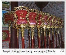 Vào thời điểm đó, làng Mộ Trạch đã trở nên đông đúc và đã phát tích khoa bảng rực rỡ, trong khoảng thời gian của triều Lê (1428-1789) thì làng Mộ Trạch đã có đến 36 vị đỗ tiến sĩ[1], mấy chục vị khác đỗ hương cống, cử nhân, sinh đồ, tú tài; nhiều vị đảm đương các chức vị cao trong triều đình đương thời. Có gia đình mấy anh em cùng đỗ đại khoa; có chi họ, như chi họ Vũ Khắc đã đời nối đời đỗ đạt[cần dẫn nguồn]. Từ đó, tên làng Mộ Trạch đã tồn tại suốt gần tám trăm năm, cho đến ngày nay.