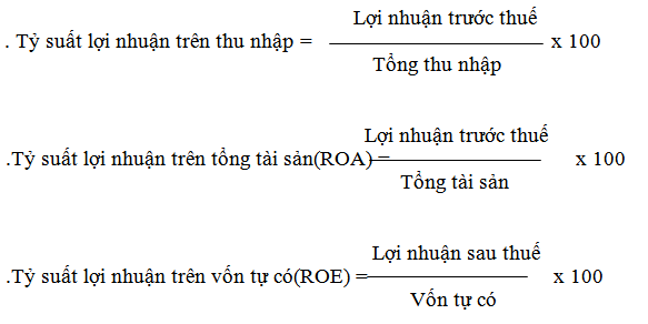 Trong đó, các nhà quản trị ngân hàng đều đặc biệt chú trọng phân tích hai chỉ tiêu: ROA và ROE. Chỉ tiêu ROA được dùng để đo lường khả năng sinh lời của tài sản có của ngân hàng. Nó cho biết cứ 100 đồng tài sản có tạo ra bao nhiêu đồng lợi nhuận cho ngân hàng. ROA càng cao chứng tỏ hiệu quả sử dụng tài sản càng cao và trình độ quản lý các tài sản của ngân hàng càng tốt. Cũng đo lường hiệu quả kinh doanh ngân hàng như ROA, nhưng chỉ tiêu ROE cho biết cứ 100 đồng vốn của chủ ngân hàng tạo ra bao nhiêu đồng lợi nhuận. Nếu ROE quá cao mà ROA thấp chứng tỏ vốn tự có của ngân hàng nhỏ, ngân hàng phụ thuộc nhiều vào nguồn vốn từ bên ngoài, do đó, độ an toàn trong kinh doanh của ngân hàng không cao.