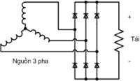 Mạch điện ba pha cần đến 6 điốt. Thông thường cần 3 cặp, nhưng không phải cùng loại với điốt đôi sử dụng trong chỉnh lưu một pha toàn sóng. Thay vào đó người ta dùng cặp điốt nối tiếp với nhau (cathode nối với Anode. Thường thì các điốt đôi sẽ được bố trí ra 4 chân, để có thể tùy ý đấu nối cho mạch chỉnh lưu toàn sóng một pha, hay mạch cầu một pha và ba pha.