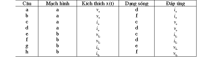 Bảng dưới đây cho ta dữ kiện của bài toán ứng với các (H 5a, b, c...) kèm theo. Tính đáp ứng và vẽ dạng sóng của đáp ứng
