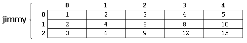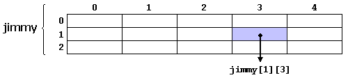 int jimmy [3][5]; tương đương vớiint jimmy [15]; (3 * 5 = 15)