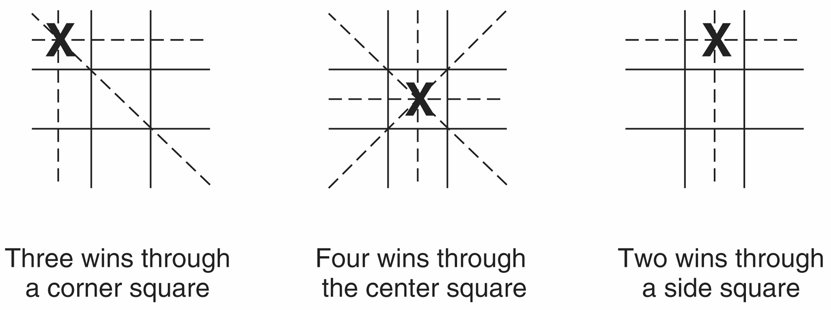Tuy nhiên, một heuristic đơn giản có thể loại bỏ việc tìm kiếm hầu như toàn bộ: heuristic “nước đi chắc thắng nhất”, nghĩa là chọn vị trí đặt quân cờ mà có nhiều đường chắc thắng nhất giao nhau. Trong trường hợp các trạng thái đều có số lượng bằng nhau, chọn trạng thái đầu tiên.