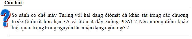Trong chương này, ta sẽ xét thêm một loại máy trừu tượng khác - máy Turing (TM - Turing Machines). Chúng có khả năng đoán nhận được lớp ngôn ngữ lớn hơn lớp ngôn ngữ phi ngữ cảnh. Đây còn là một mô hình của sự tính toán, mô hình của các thủ tục hiệu quả, là nền tảng cho quá trình xử lý của máy tính hiện đại, được giới thiệu bởi Alan Turing vào năm 1936. Nhờ đó, các khái niệm về "sự tính được", "sự giải được" được xác định một cách rõ ràng trên cơ sở sự xuất hiện của một số hàm không tính được, các bài toán không giải được.