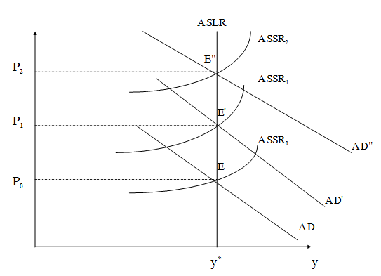 Trong cả hai trường hợp sẵn có lượng tiền nhiều hơn cho dân cư và chi phí. Về mặt trung hạn và dài hạn, điều đó dẫn tới cầu về hàng hoá và dịch vụ tăng. Nếu cung không tăng tương ứng với cầu, thì việc dư cầu sẽ được bù đắp bằng việc tăng giá. Tuy nhiên, giá cả sẽ không tăng ngay nhưng nó sẽ tăng sau đó 2-3 năm. In tiền để trợ cấp cho chi tiêu công cộng sẽ dẫn đến lạm phát nghiêm trọng.
