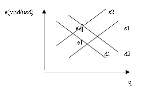 Sự tăng lên nhu cầu ngoại tệ xẩy ra cùng với sự giảm xuống của cung ngoại tệ sẽ gây lên sự giảm giá của đồng nội tệ.