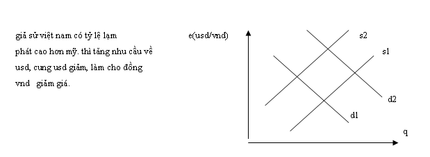 Ảnh hưởng của mức chênh lệch lạm phát đến tỷ giá hối đoái có thể được minh họa ở đồ thị sau:
