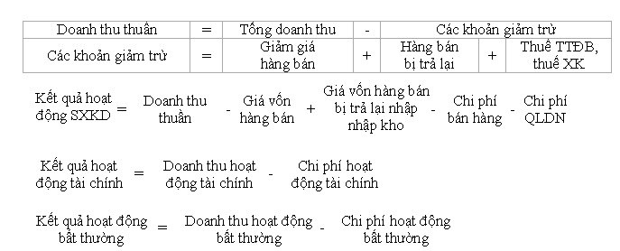 KQKD của doanh nghiệp gồm: Kết quả hoạt động SXKD, kết quả hoạt động tài chính và kết quả hoạt động khác.