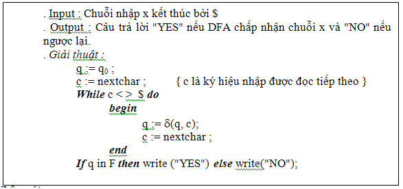 Output: Một ôtômát hữu hạn đơn định DFA nhận dạng cùng ngôn ngữ như NFA.