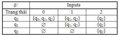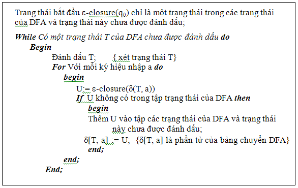 - Một trạng thái của DFA là trạng thái kết thúc nếu nó là tập các trạng thái của NFA chứa ít nhất một trạng thái kết thúc của NFA.