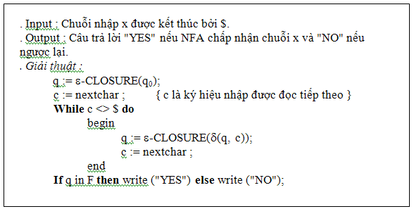 Giải thuật mô phỏng hoạt động của một NFA ε :