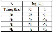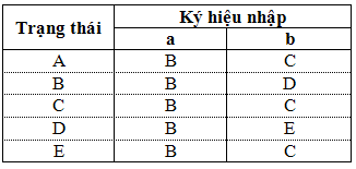 Kết quả được chỉ ra trong bảng hàm chuyển sau :