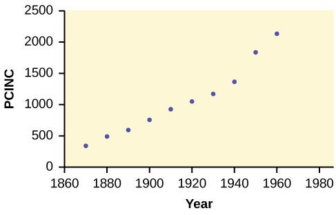 If you are interested in seeing more years of data, visit the Bureau of Labor Statistics CPI website ftp://ftp.bls.gov/pub/special.requests/cpi/cpiai.txt; our data is taken from the column entitled "Annual Avg." (third column from the right). For example you could add more current years of data. Try adding the more recent years: 2004: CPI = 188.9; 2008: CPI = 215.3; 2011: CPI = 224.9. See how it affects the model. (Check: ŷ = –4436 + 2.295x; r = 0.9018. Is r significant? Is the fit better with the addition of the new points?)