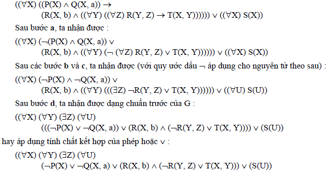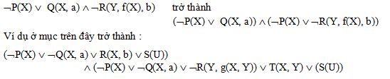 Cho công thức dạng ( X) G(X) và giả sử G(X) được tạo thành từ một hoặc nhiều công thức chỉ được lượng tử hoá toàn thể ( ) đối với các biến Y1,..., Yn mà thôi. Ta sẽ loại bỏ lượng tử tồn tại ( X), sau đó thay thế mỗi vị trí của X trong G(X) bởi một hàm có dạng f(Y1,..., Yn).